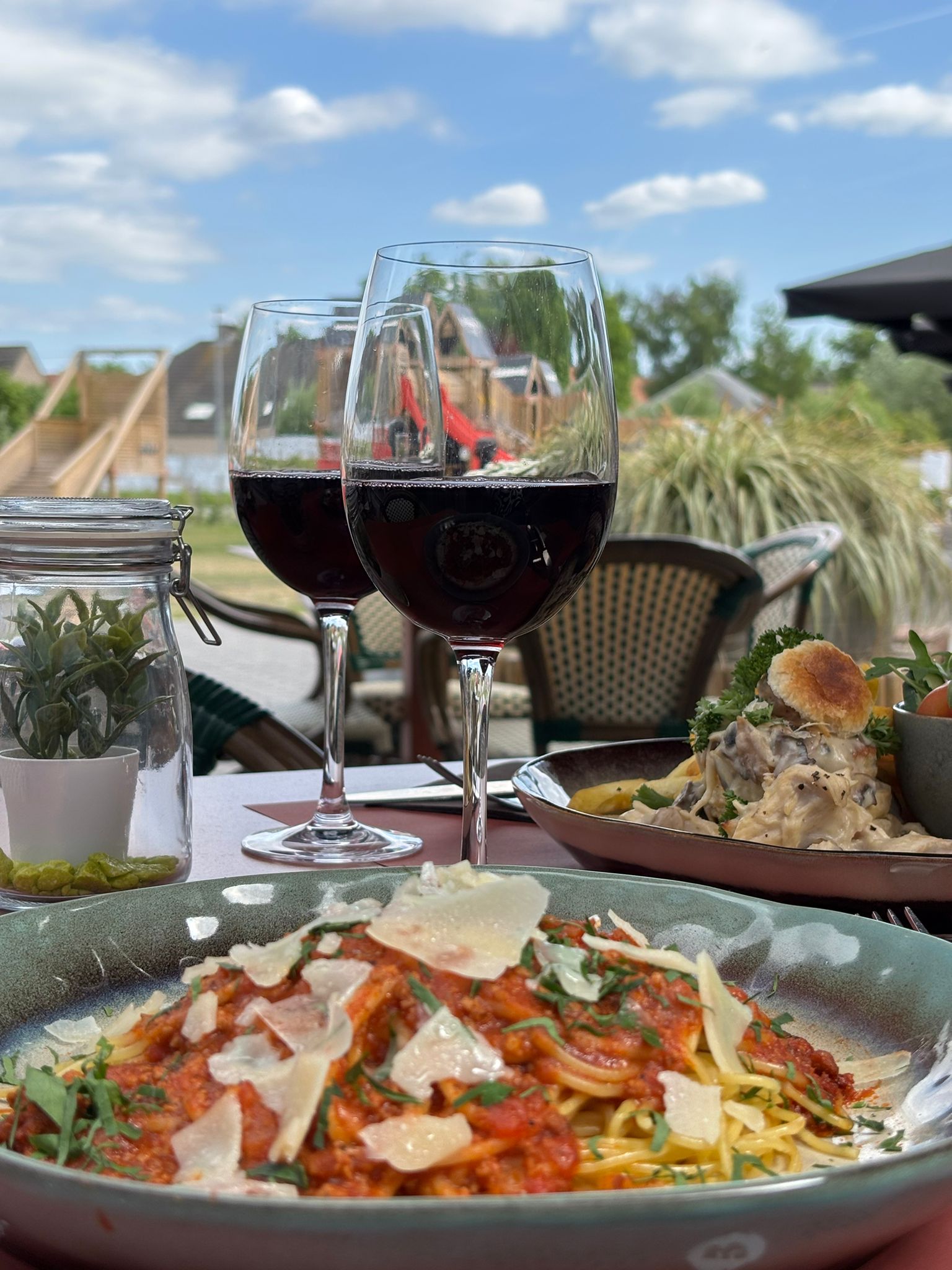 Altijd genieten, met zicht op de spelende kinderen.
